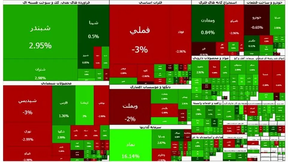 در روزی که شاخص کل بورس ۱۳ هزار واحد افت کرد و به چهار میلیون و ۴۷۸ هزار واحد رسید، شاخص هموزن و فرابورس رشد نسبتا خوبی را تجربه کردند.