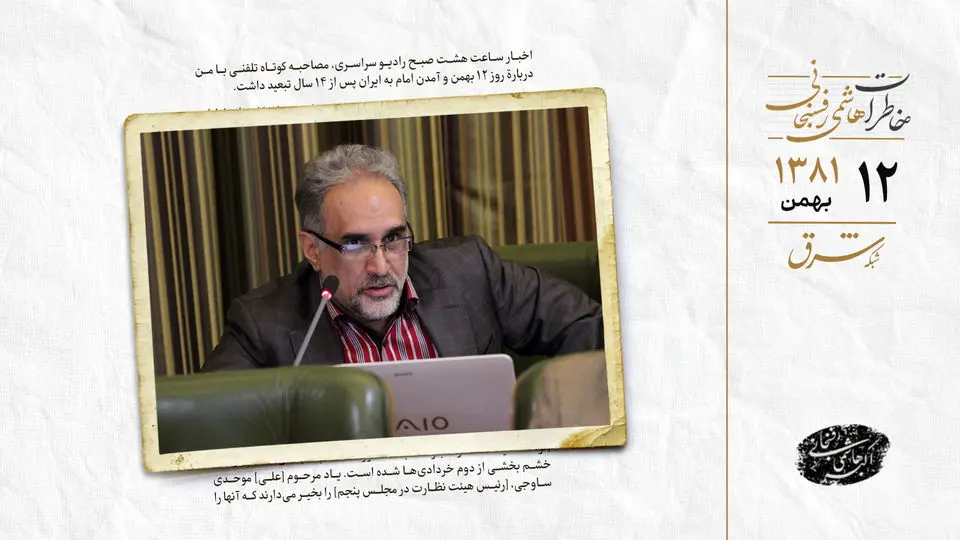 اخبار ساعت هشت صبح رادیو سراسرى، مصاحبه‌ کوتاه تلفنى با من دربارة روز 12 بهمن و آمدن امام به ایران پس از 14 سال تبعید داشت.