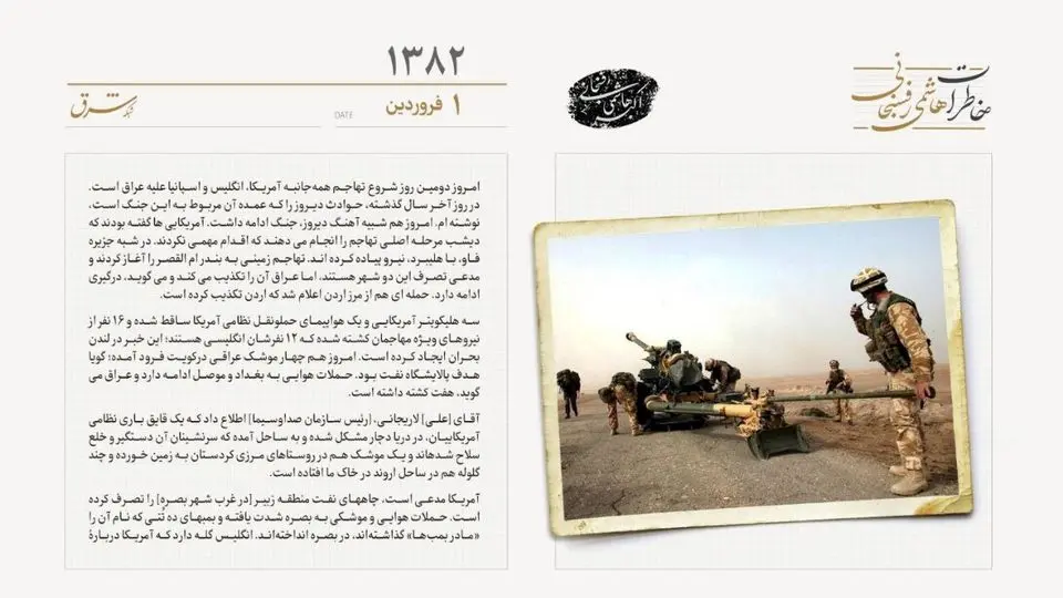 امروز دومین روز شروع تهاجم همهجانبه آمریکا، انگلیس و اسپانیا علیه عراق است. در روز آخر سال گذشته، حوادث دیروز را که عمده آن مربوط به این جنگ است، نوشتهام. امروز هم شبیه آهنگ دیروز، جنگ ادامه داشت. آمریکاییها گفته بودند که دیشب مرحله اصلی تهاجم را انجام میدهند که اقدام مهمی نکردند. در شبهجزیره فاو، با هلیبرد، نیرو پیاده کردهاند. تهاجم زمینی به بندر امالقصر را آغاز کردند و مدعی تصرف این دو شهر هستند، اما عراق آن را تکذیب میکند و میگوید، درگیری ادامه دارد. حملهای هم از مرز اردن اعلام شد که اردن تکذیب کرده است.