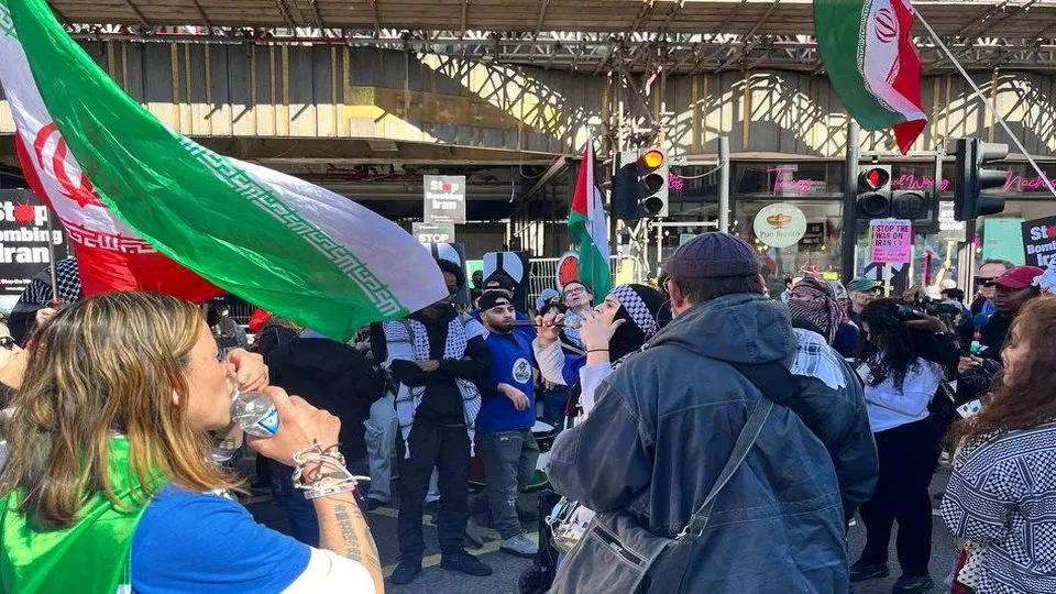جمعی از معترضان در اندن در تجمعی ضد جنگ، نسبت به حملات آمریکا و رژیم صهیونیستی علیه ایران واکنش نشان دادند.