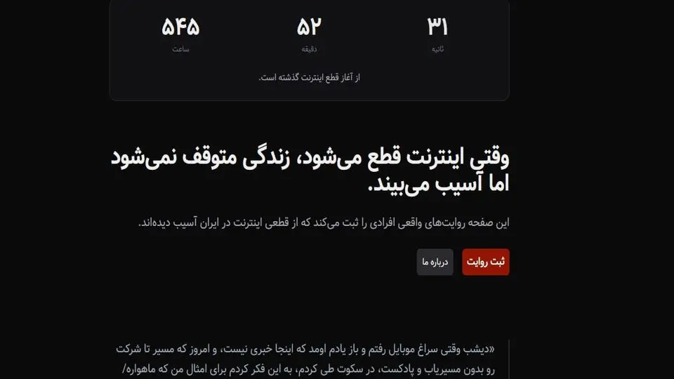در نبود شفافیت رسمی درباره ابعاد، تصمیم‌گیران و پیامدهای قطع اینترنت، چنین وب‌سایت‌هایی به آرشیوی غیررسمی اما مهم تبدیل می‌شوند؛ آرشیوی از تجربه‌های زیسته که نشان می‌دهد اینترنت، دیگر یک ابزار لوکس یا صرفاً رسانه‌ای برای سرگرمی نیست، بلکه زیرساختی حیاتی برای زیست اجتماعی، اقتصادی و انسانی است.