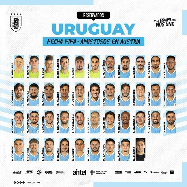 فهرست تیم ملی اروگوئه برای بازی مقابل تیم ملی ایران اعلام شد.