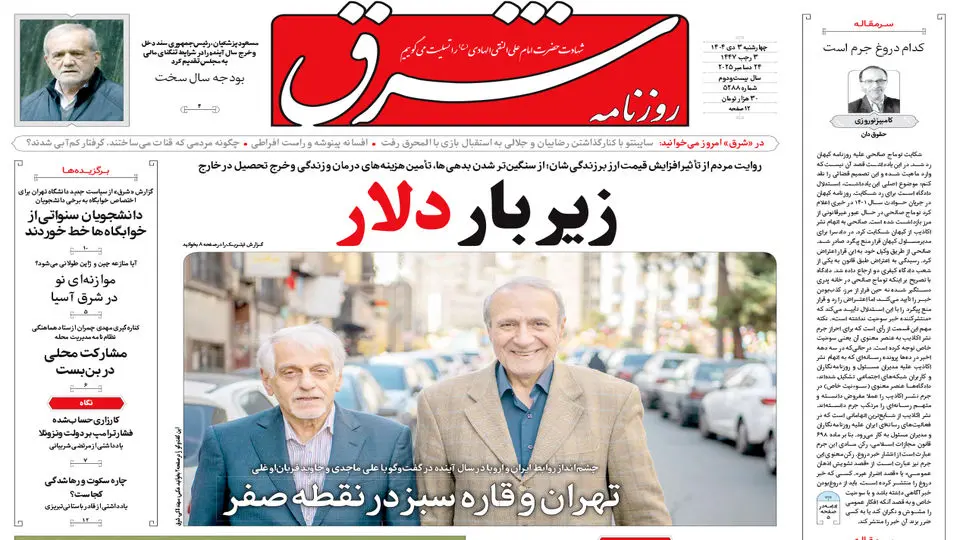 پی دی اف روزنامه ۳ دی ۱۴۰۴ ۰۰:۰۰ روزنامه شرق چهارشنبه ۳ دی ۱۴۰۴ شماره ۵۲۸۸ به گزارش گروه رسانهای شرق، آخرین شمارههای منتشر شده روزنامه شرق را از طریق این لینک ببینید. مهمترین مطالب روزنامه شرق امروز روزنامه شرق لینک کوتاه کپی شد کدخبر: 1077299