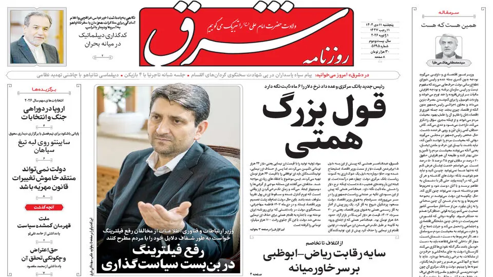 روزنامه شرق پنجشنبه ۱۱ دی ۱۴۰۴ شماره ۵۲۹۵