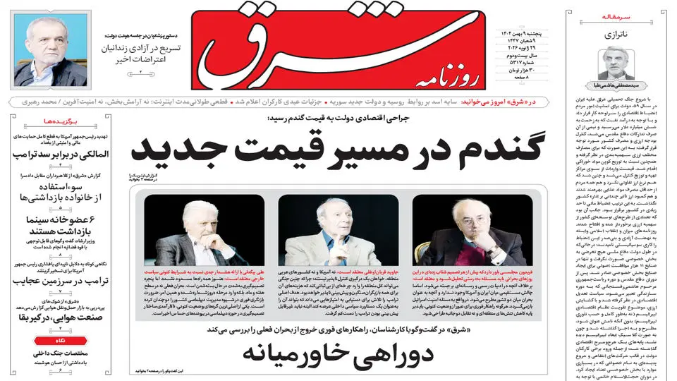 پی دی اف روزنامه ۹ بهمن ۱۴۰۴ ۰۰:۰۰ روزنامه شرق پنجشنبه ۹ بهمن ۱۴۰۴ شماره ۵۳۱۷ به گزارش گروه رسانهای شرق، آخرین شمارههای منتشر شده روزنامه شرق را از طریق این لینک ببینید. مهمترین مطالب روزنامه شرق امروز روزنامه شرق لینک کوتاه کپی شد کدخبر: 1084487