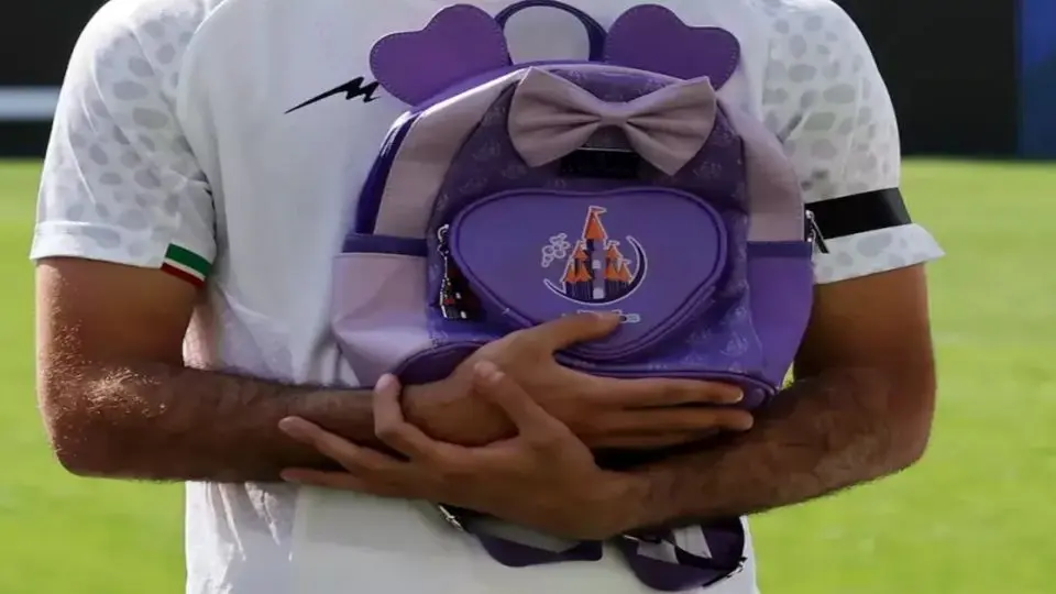 بازیکنان مرد ایران هنگام ردیف شدن، کولهپشتیهای صورتی و بنفش با روبانهایی در دست داشتند؛ اشارهای به حمله به مدرسه شجره طیبه میناب که تهران اعلام کرده در نخستین روز حملات مشترک آمریکا و اسرائیل بیش از ۱۷۵ نفر از جمله کودکان و معلمان کشته شدند.